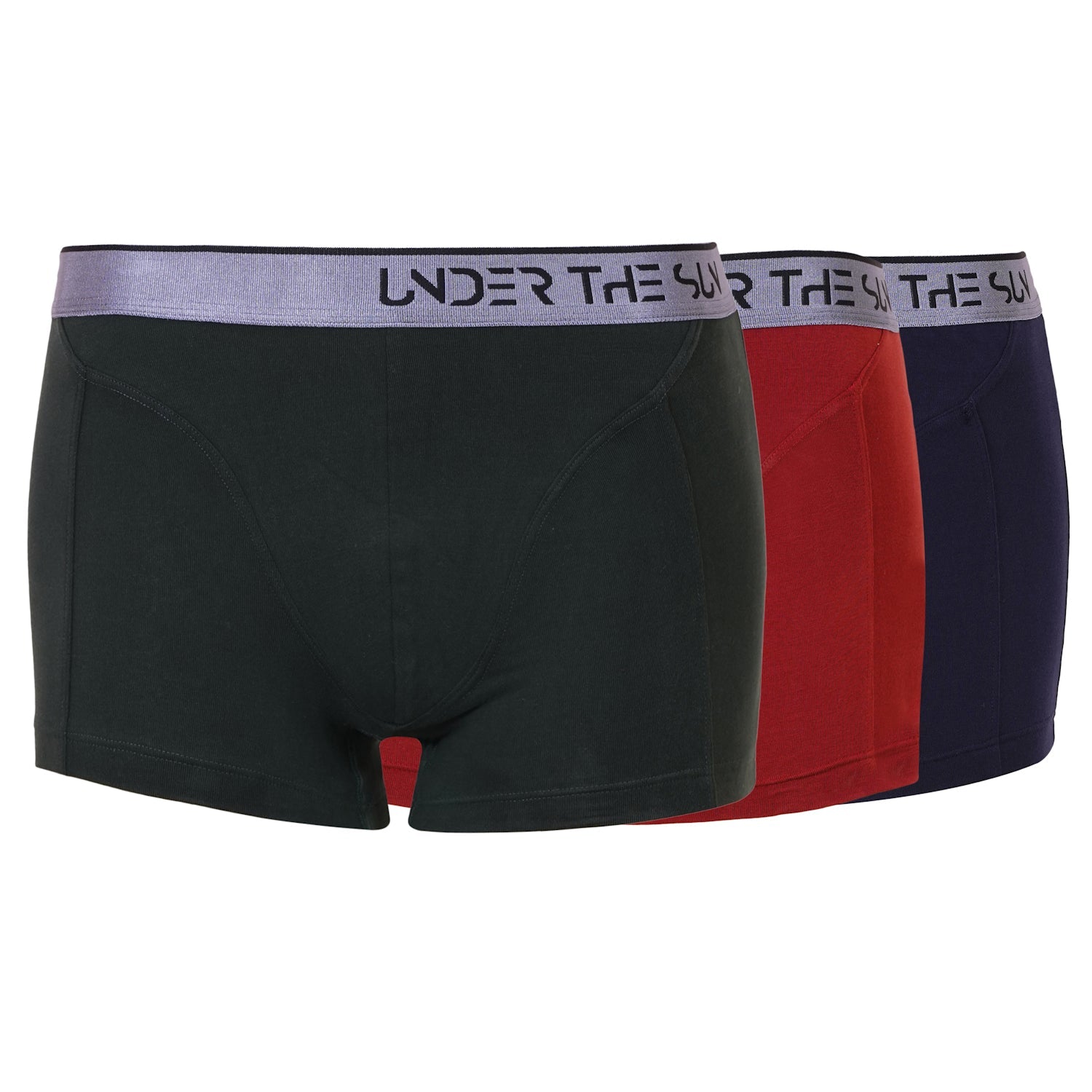 Men’s Premium Cotton Trunks Combo – Mahogany, Cobalt, Olive.