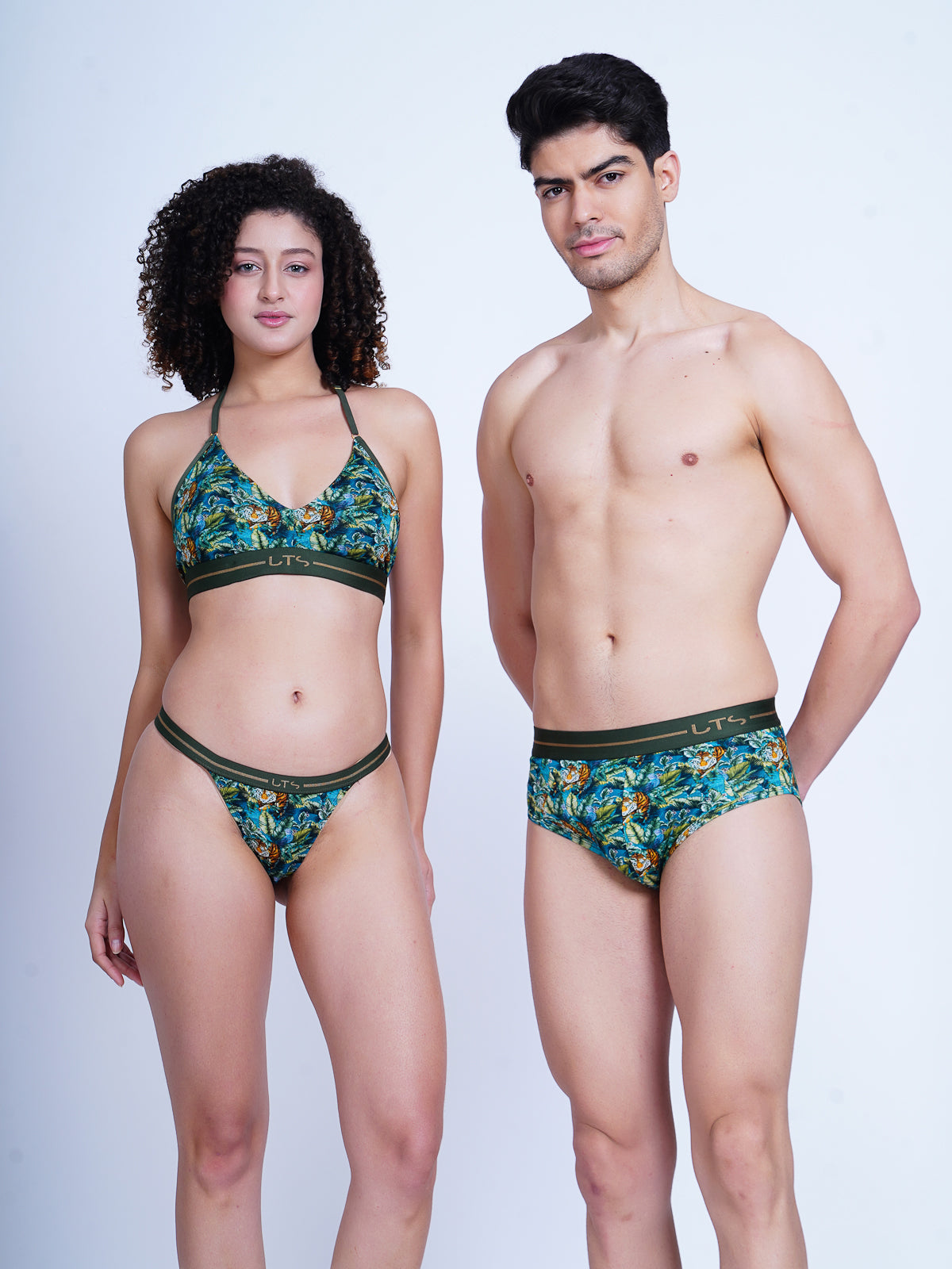 Unleash your wild side with Ferocious Ardor, our tantalizing collection of jungle-inspired underwear for men and women. These eye-catching pieces feature a bold jungle tiger print set against lush, tropical foliage, perfectly capturing the raw beauty of nature. It is just perfect for the wonderful couple you are.