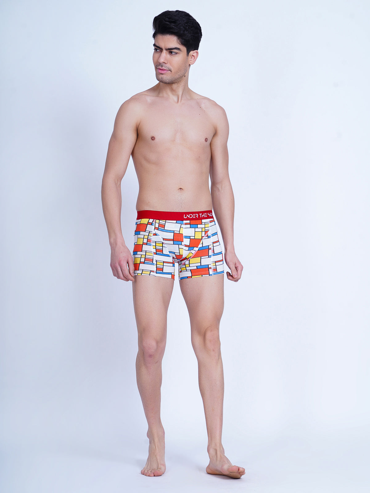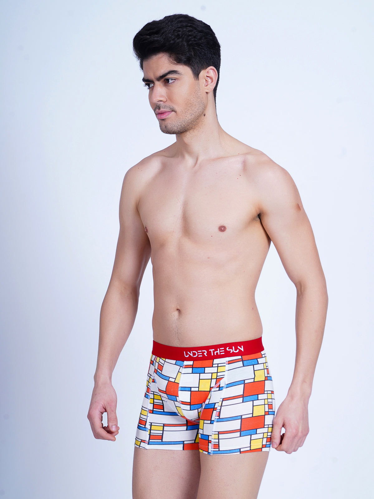 Step into the mesmerising world of "Matrix", a geometric masterpiece where white and red squares intertwine with bold blue lines. crafted with precision and an eye for detail. The Matrix is a visual symphony of modern design. Each pair is a canvas of symmetry and style, reflecting the meticulous artistry that goes behind designing underwear. Immerse yourself in the harmonious blend of colors and lines, as matrix redefines your essentials with a contemporary edge. Elevate your wardrobe with Matrix, where geometry meets fashion in a vibrant display of sophistication.