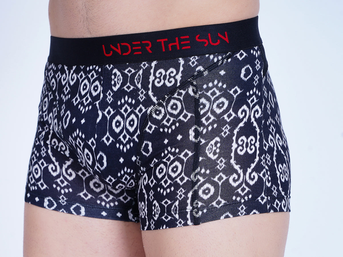 Introducing the epitome of craftsmanship in our “Harmony Collection:” Rhythm Ikat. Immerse yourself in the intricate details of this ikat print, where every thread tells a story of heritage and artistry. Crafted by skilled artisans, these trunks showcase a fusion of patterns that resonate with tradition and timeless elegance. The harmony collection celebrates the delicate balance between heritage and modernity, creating an ensemble that encapsulates the essence of artisanal craftsmanship. Redefine your essentials with artisan ikat, where the legacy of skilled hands meets the contemporary allure of fashion.